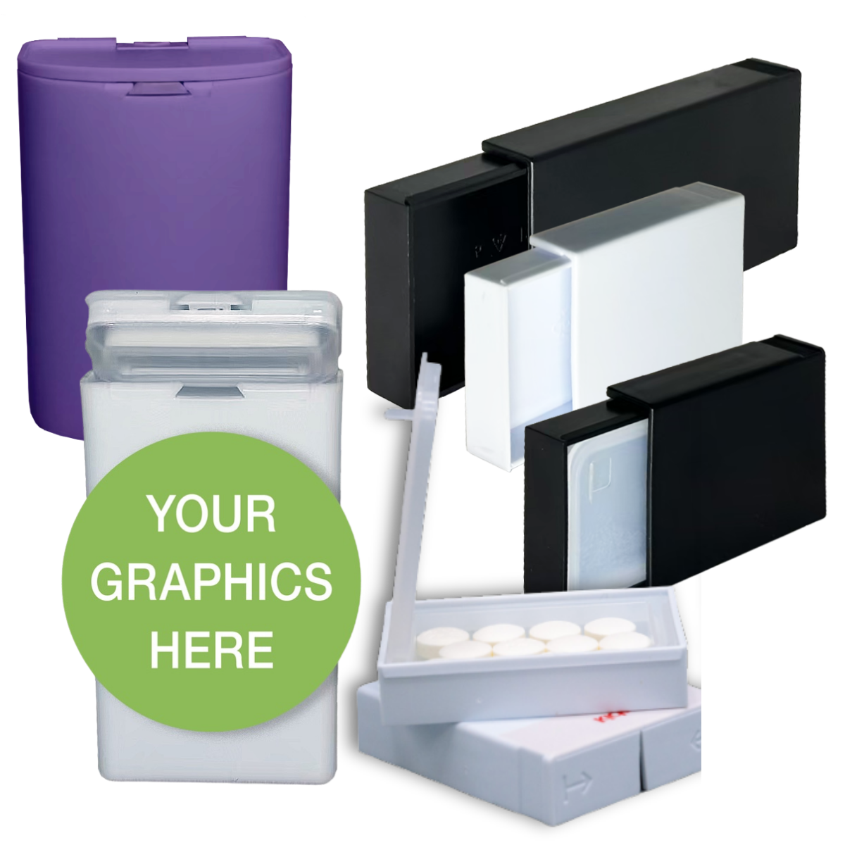 Tin, PCR Plastic, Paper Box Containers: We offer various material options, sizes, open orientations and more for your perfect pharmacy packaging solution.